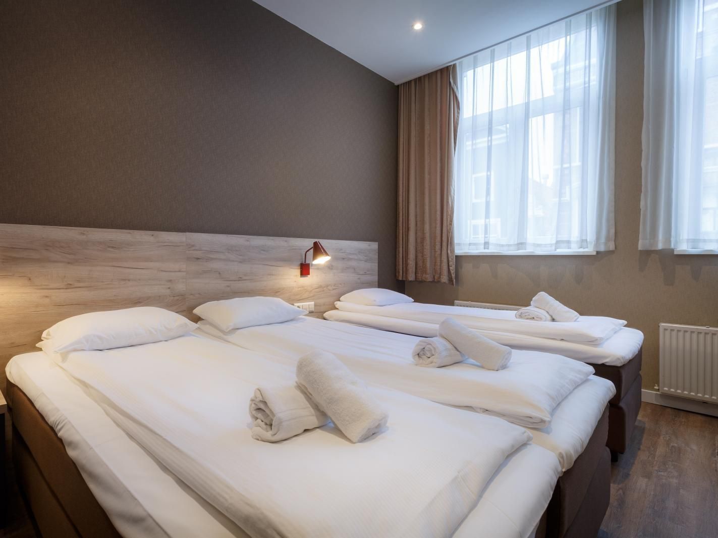 Onze vijfpersoonskamers zijn gezellig en comfortabel en beschikken over 5 eenpersoonsbedden. De kamer heeft een eigen douche, tv, telefoon, toilet en badkamer. Dankzij de geweldige locatie en ons prachtige gebouw ervaart u het echte Amsterdam.